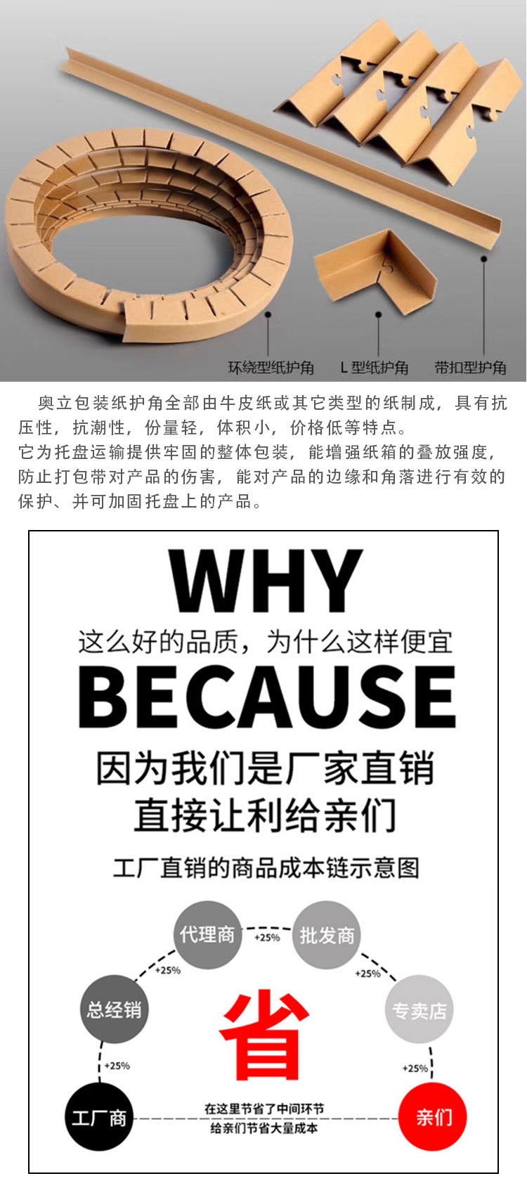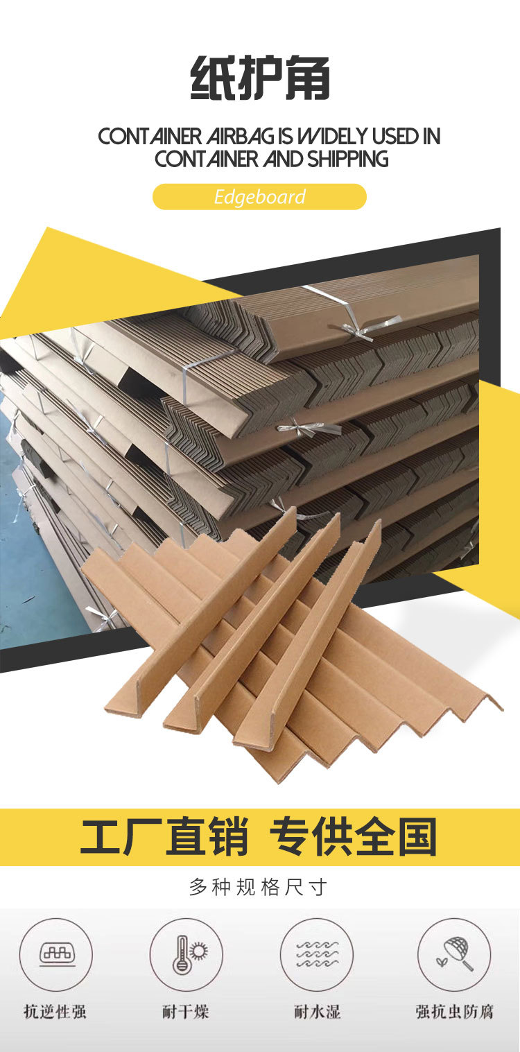 奧立包裝紙護(hù)角全部由牛皮紙或其它類型的紙制成,具有抗壓性,抗潮性,份量輕,體積小,價(jià)格低等特點(diǎn)。